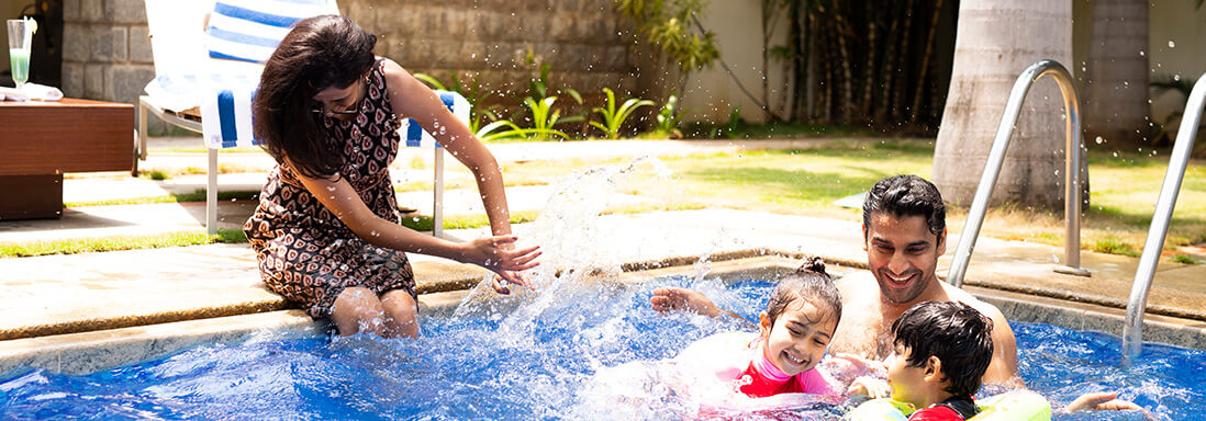 Every one of our 70 Rooms, Luxury Villas & Suites have been designed to your comfort and convenience. With Lush greens, swaying palms and serene pool views, every villa has its own private garden in the front with huge windows as if extending in to the landscape